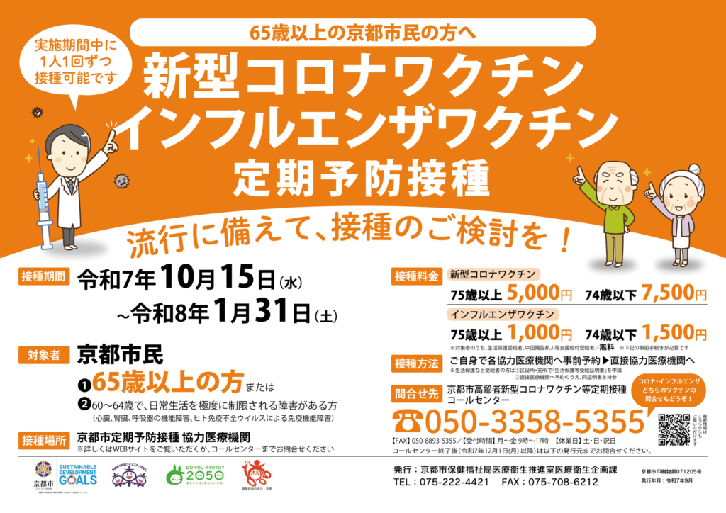 2025年度のインフルエンザワクチン、コロナワクチン接種を開始しました。